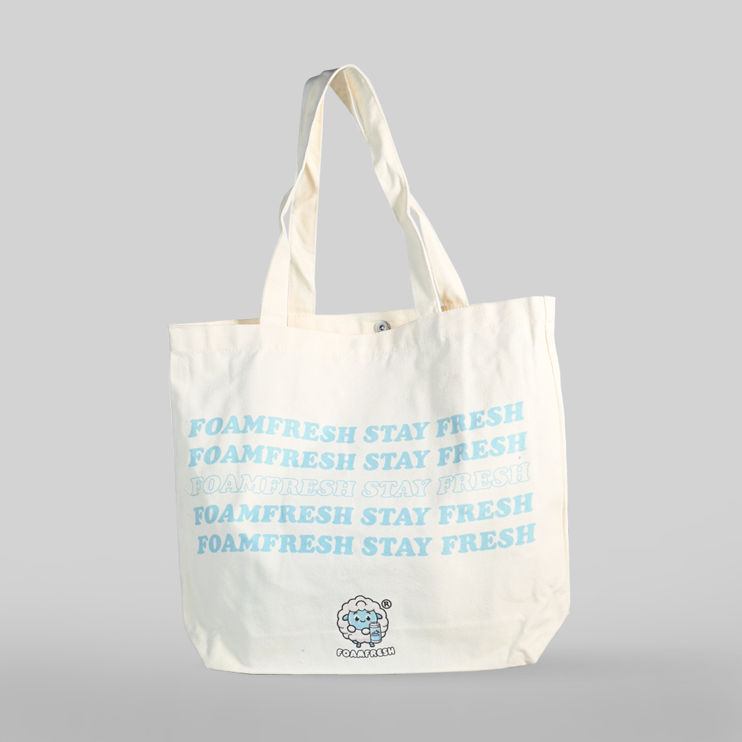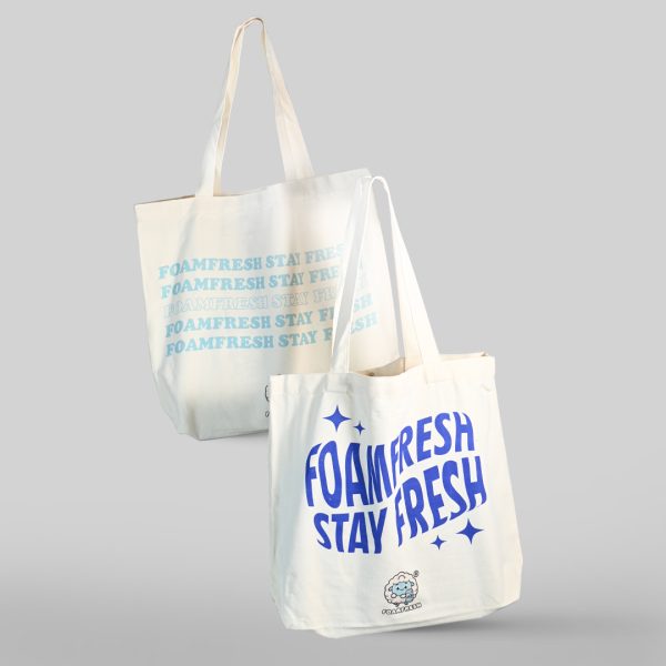 The bag features a subtle yet iconic FoamFresh logo, adding a fresh, modern touch to your look. Made from durable yet lightweight material, it’s comfortable to carry throughout your day. Whether you’re heading to the gym, running errands, or pairing it with a casual outfit, this tote bag is a simple, stylish essential that fits right into your lifestyle.