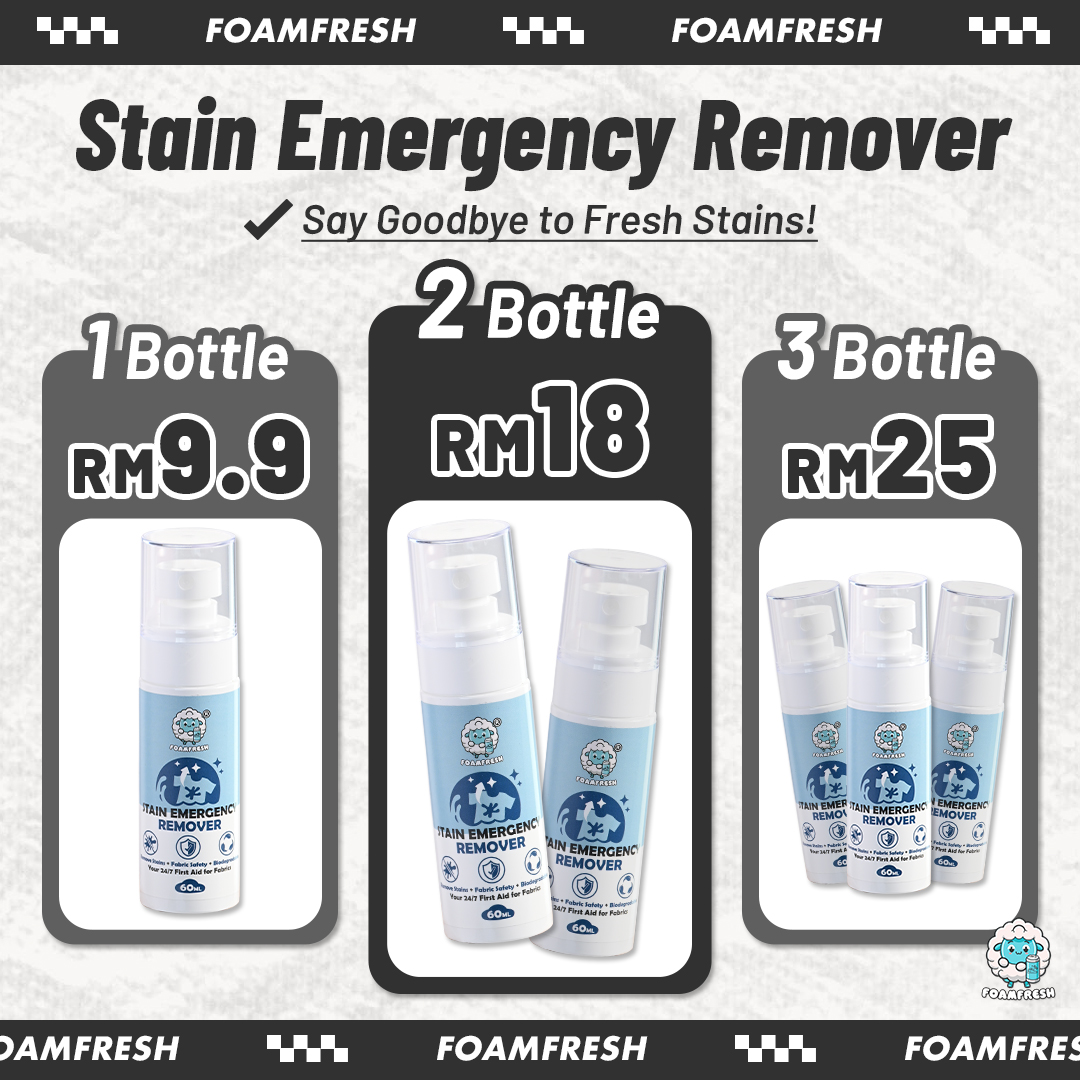 Don’t stress when stains happen—FoamFresh Stain Emergency Remover is here to save the day! Whether it’s soy sauce, chili sauce, blood, oil, or drink spills, this powerful yet gentle remover tackles 90% of everyday stains on clothes and various fabrics. Perfect for use on colored clothes, sofas, bags, shoes, carpets, and bedding, it’s the versatile solution for your home.